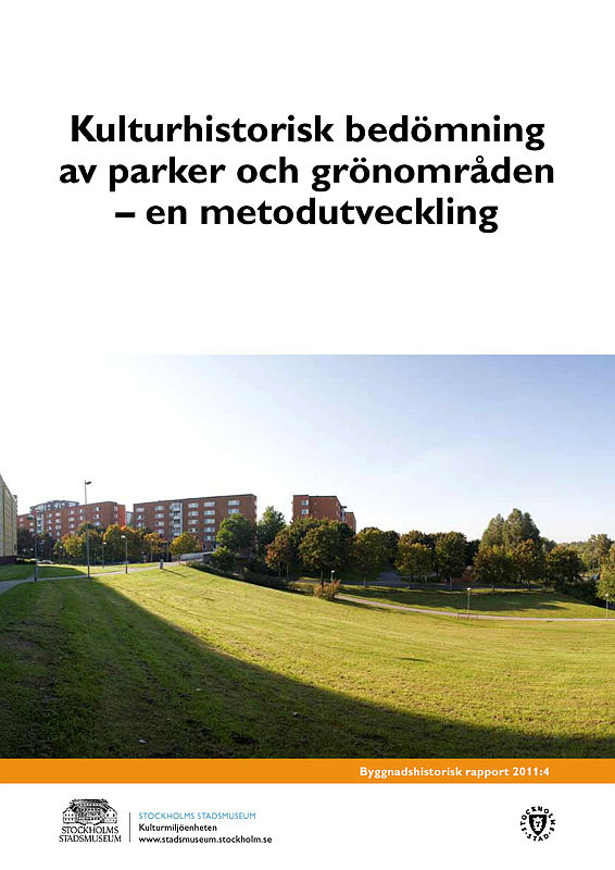 Kulturhistorisk bedömning av parker och grönområden : en metodutveckling / [Rapportförfattare: Klara Johansson]. - Stockholm : Stockholms stadsmuseum, 2011. - 44 s. : ill. - (Byggnadshistorisk rapport / Stockholms stadsmuseum. Kulturmiljöenheten ; 2011:4)