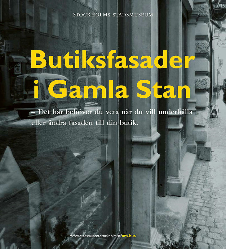 Butiksfasader i Gamla Stan : det här behöver du veta när du vill underhålla eller ändra fasaden till din butik / [text: Maria Lorentzi ; foto: Göran Fredriksson ...]. - Stockholm : Stockholms stadsmuseum, 2007. - [16] s. : ill. (huvusakligen i färg).. - Anmärkning: Titel från omslag. - ISBN 978-91-85233-71-7
