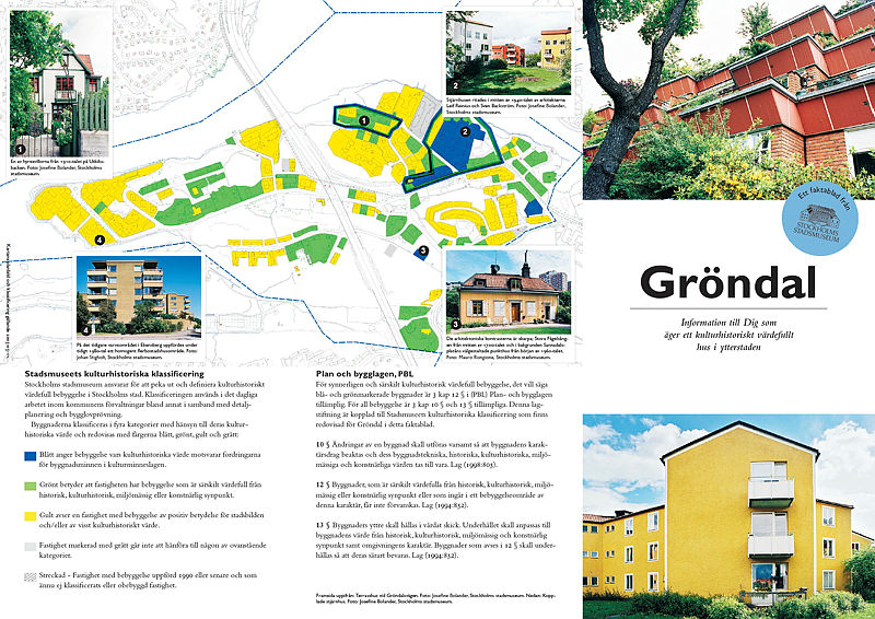 PUBLIKATION Gröndal : information till Dig som äger ett kulturhistoriskt värdefullt hus i ytterstaden. - Stockholm : Stockholms stadsmuseum. Kulturmiljöenheten, 2009. - 6 s. : ill. - (Ett faktablad från Stockholms stadsmuseum)